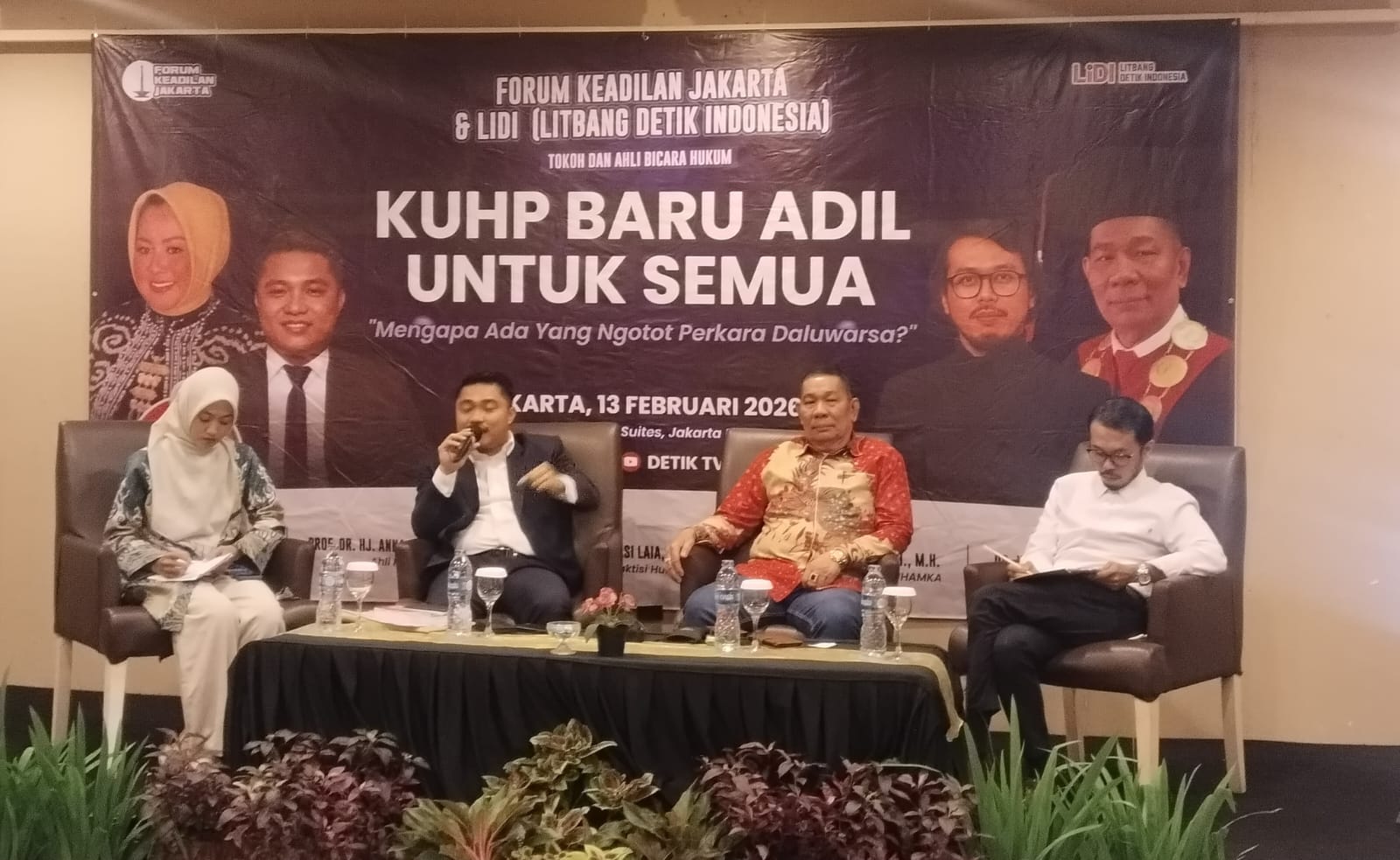 ASAMMANIS.NEWS – JAKARTA, 13 Februari 2026 – Isu daluwarsa dalam Kitab Undang-Undang Hukum Pidana (KUHP) Nasional kembali menjadi sorotan dalam forum diskusi bertajuk “KUHP Baru Adil untuk Semua: Mengapa Ada yang Ngotot Perkara Daluwarsa?” yang digelar Forum Keadilan Jakarta bersama LIDI (Litbang Detik Indonesia) di Horiston Hotel & Suites, Jakarta Utara, Jumat (13/2/2026).