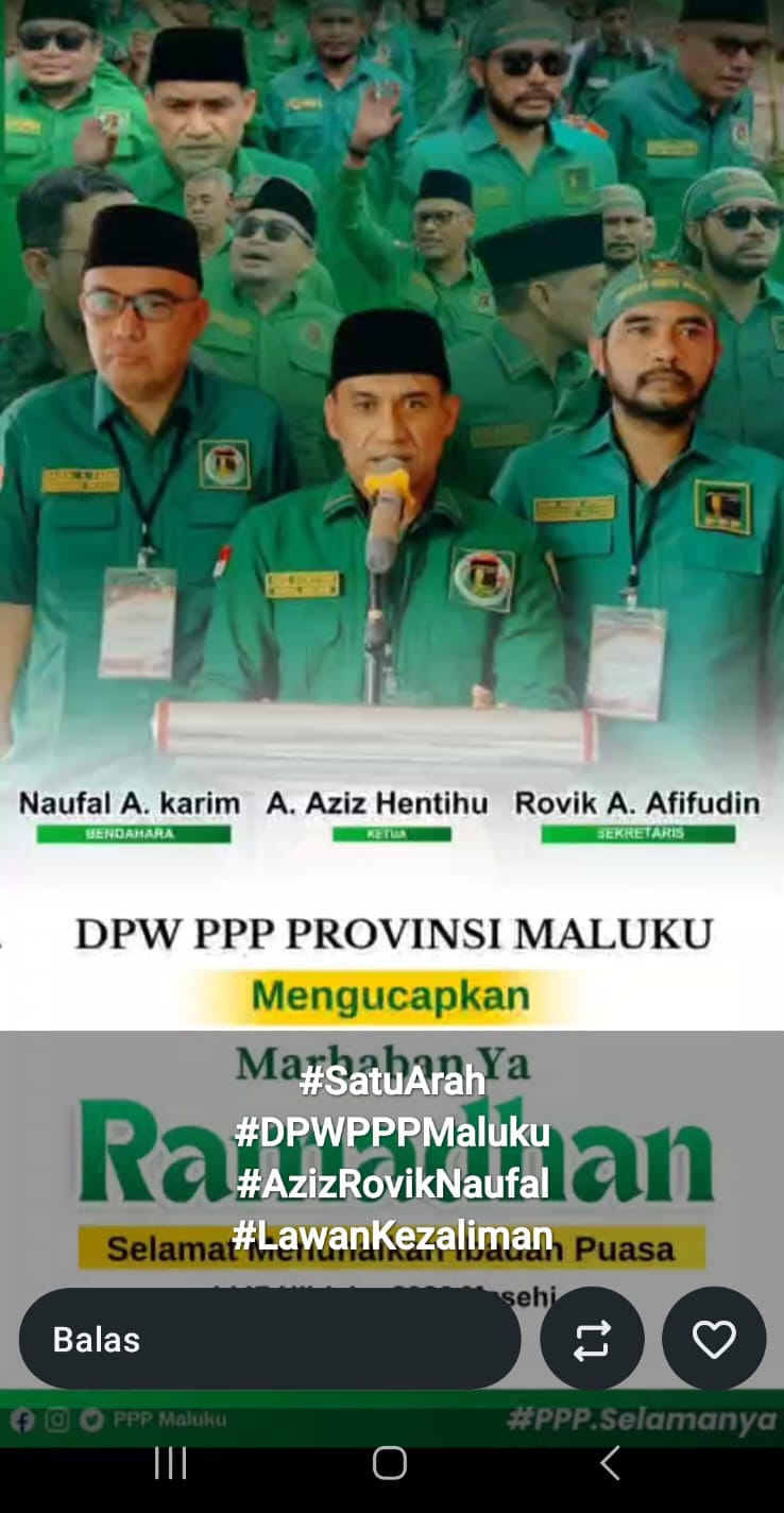 Narasi yang menyertai unggahan di fitur story WhatsApp itu memuat tagar “#satuarah #DPWPPPMaluku #AzizRofikNaufal #LawanKezaliman”. Bahkan, dalam flayer tersebut masih tertulis struktur kepengurusan lama, meski secara organisatoris telah terjadi pergantian mandat oleh DPP.